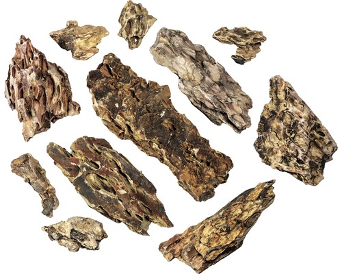 Asian stone with a surface like a dragon skin. Greenish-brown colour with parallel holes or depressions. One of the most popular aquascaping stones. Gives little calcium. Includes 11 pieces for a 80 l aquarium.