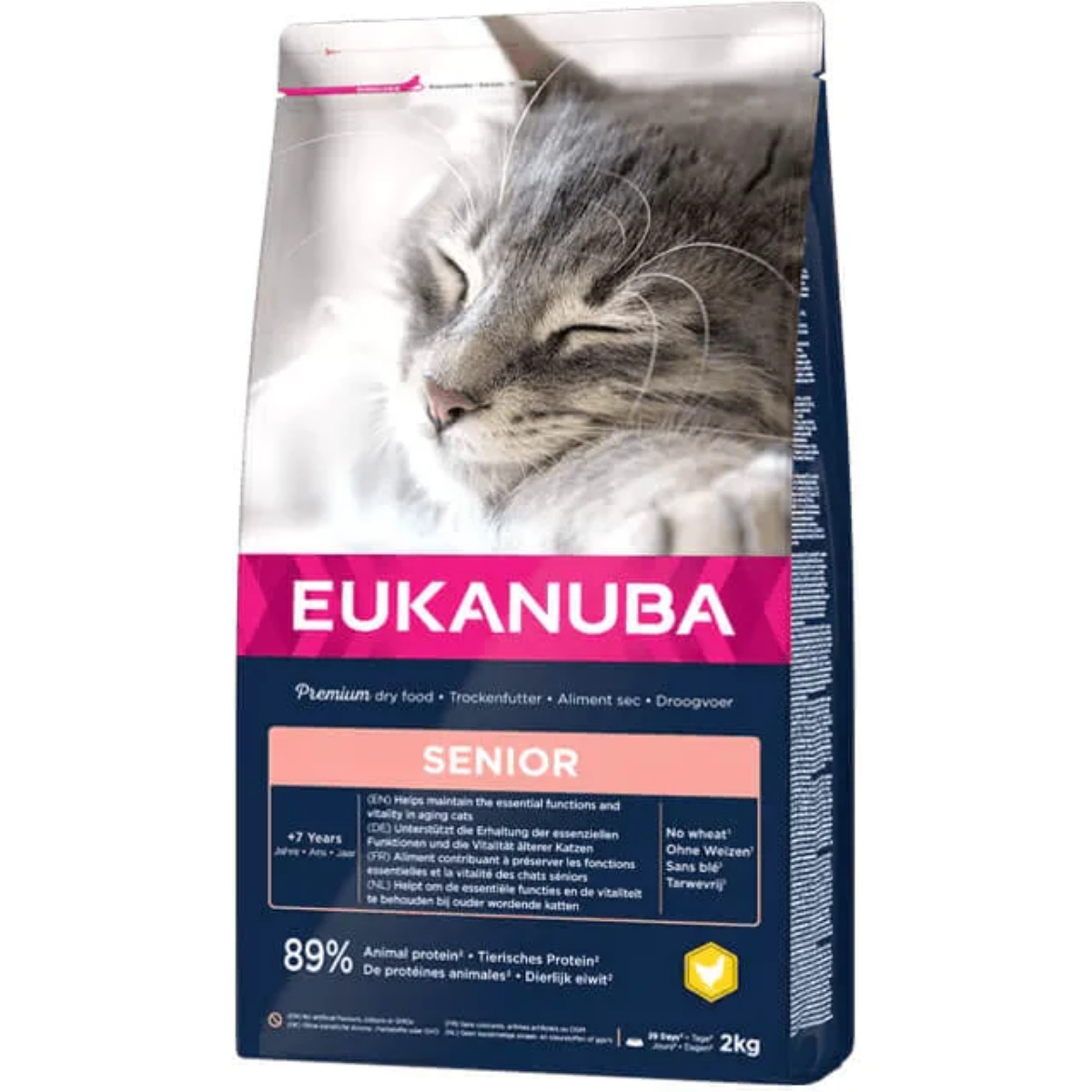 Сухой корм Eukanuba для пожилых кошек является 100% полноценным и сбалансированным. Этот вкусный рецепт богат свежей курицей и содержит 89% животного белка (от общего количества белка), что способствует формированию и поддержанию тонуса мышц. Рецепт без пшеницы* богат легкоусвояемым рисом и помогает поддерживать основные функции и жизненные силы стареющих кошек. Кроме того, антиоксиданты способствуют укреплению естественных защитных сил организма и повышению жизненного тонуса. Благодаря содержанию L-карнитина это питание способствует сжиганию жира и поддержанию здорового веса. Для здоровой кожи и сияющей шерсти эта формула содержит оптимальное соотношение жирных кислот омега 6 и 3 и рыбий жир. Сухой корм Eukanuba для пожилых кошек — это чистое и вкусное питание, не содержащее искусственных ароматизаторов, красителей и ГМО.