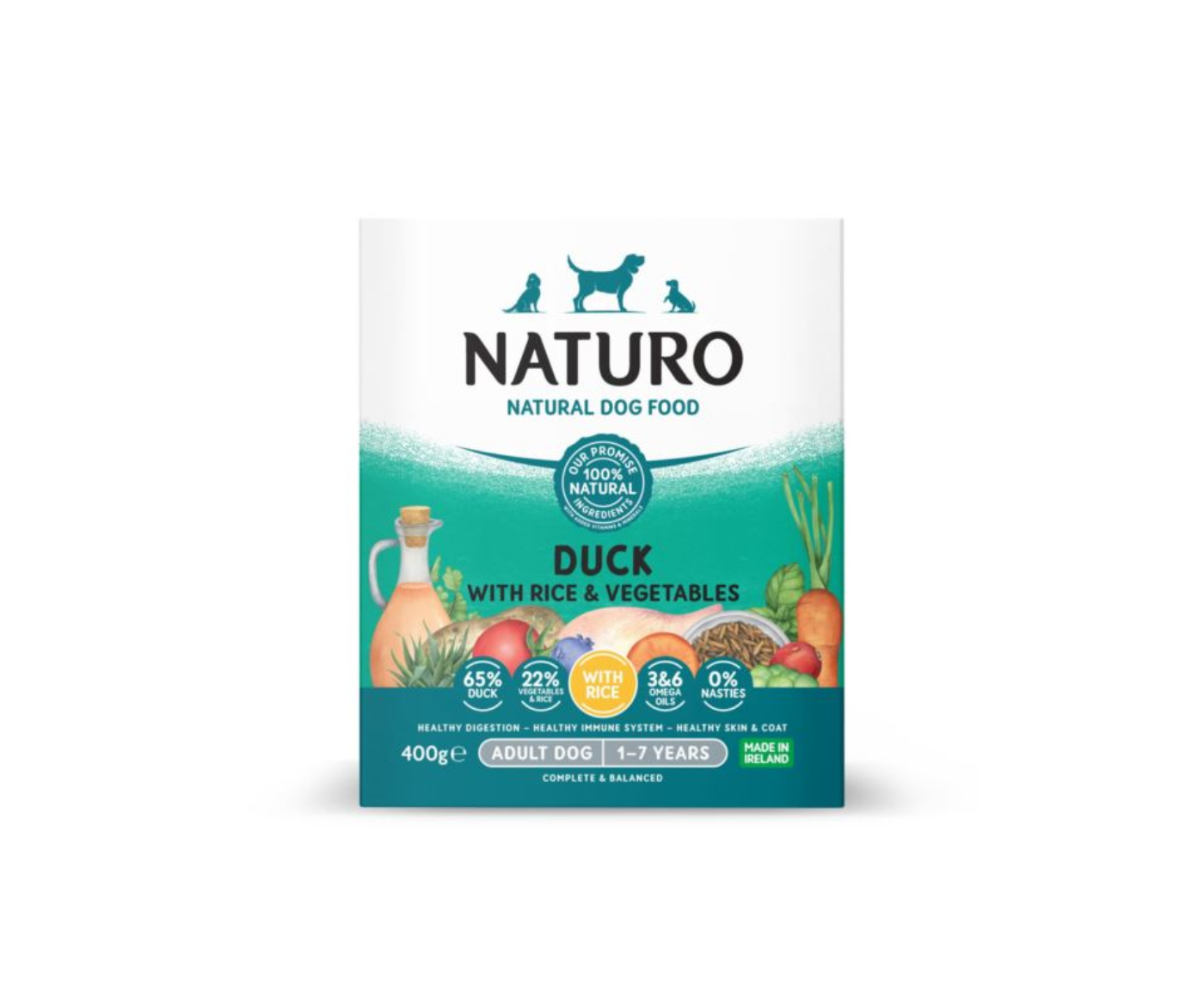Наш восхитительный влажный корм для собак содержит 65% утки, высококачественного белка и отличного источника витаминов и минералов. Утка — идеальная альтернатива для собак с непереносимостью обычных продуктов. Этот влажный корм для собак также содержит 10% овощей и 12,5% коричневого риса, что позволяет получить энергетически насыщенную, легкоусвояемую еду. Омега-3 и 6 включены в подсолнечное и лососевое масла, чтобы помочь сохранить здоровыми кожу и шерсть вашей собаки на протяжении всей ее жизни. Naturo содержит 100% натуральных ингредиентов с добавлением витаминов, минералов и кальция для поддержки иммунной системы, зубов и костей вашей собаки. Наш рецепт не содержит добавленных искусственных красителей, ароматизаторов или консервантов, обеспечивая лучшую натуральную, гипоаллергенную еду для вашей собаки.