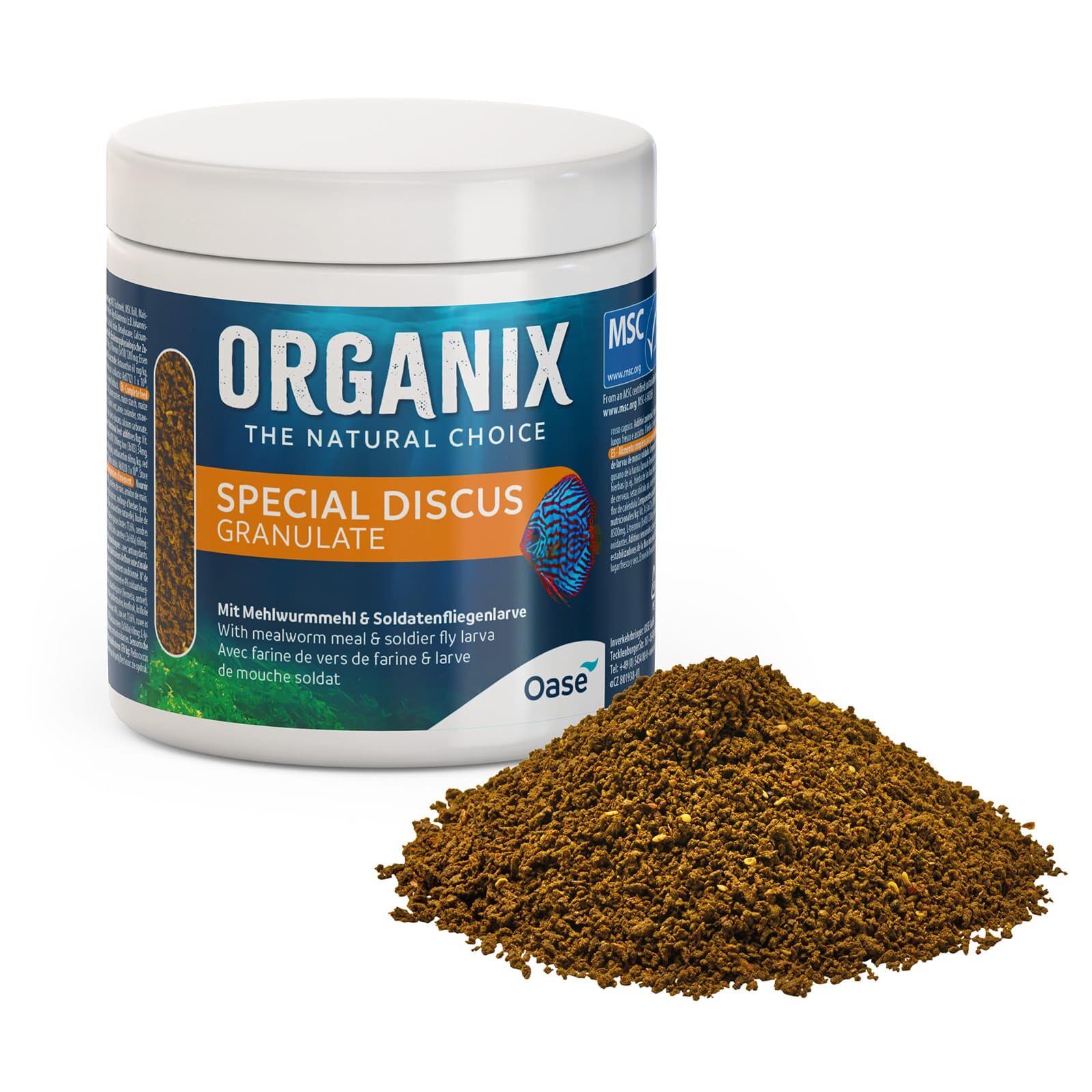 Корм Oase Organix Discus Granulate специально разработан для удовлетворения требовательных потребностей дискусов. Смесь гранул разного размера (2-3 мм) в каждой упаковке обеспечивает спокойное кормление в различных зонах плавания, гарантируя равномерное питание всем рыбам в аквариуме.