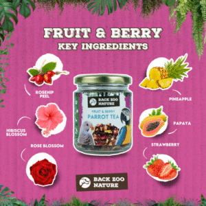 Parrot Tea Fruit & Berry kuivatatud puuviljade, marjade ja taimeõie teesegu annab imelise maitseelamuse ja aitab kaasa teie linnu heaolule.